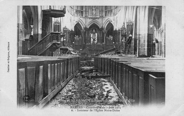 Le 7 juin 1904, un orage durable frappe la ville de Mamers (Sarthe) et les communes environnantes. La rivière Dive, qui entre rapidement en crue, se transforme en un torrent furieux qui inonde la basse ville de plusieurs mètres d'épaisseur d'eau et de boue. Le bilan est lourd: 21 morts au total et des dégâts matériels considérables.