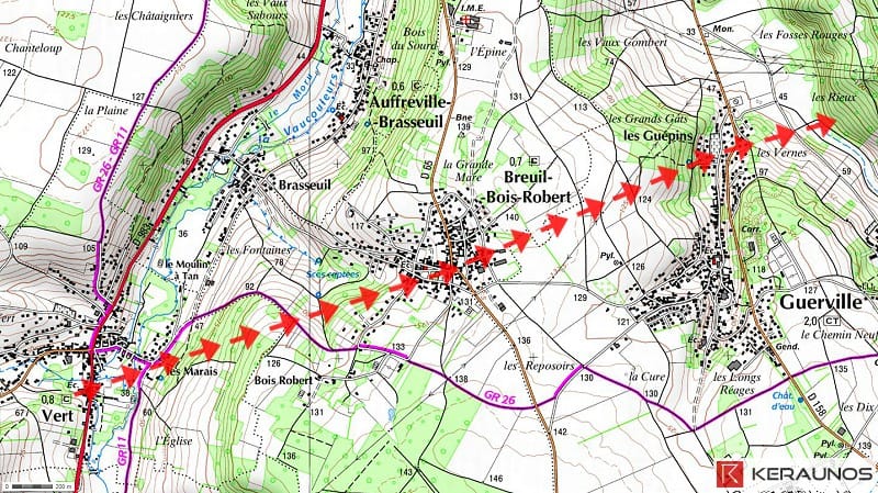 * communes touchées : VERT (école, berges de la Vaucouleurs, les Marais), BREUIL-BOIS-ROBERT (église), GUERVILLE (cimetière)