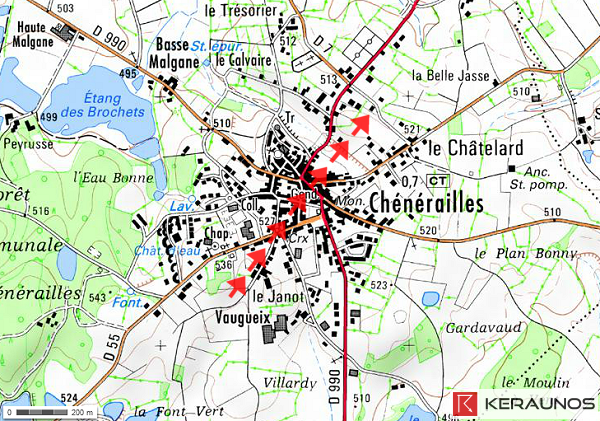 * commune traversée : CHÉNÉRAILLES (le Janot, gendarmerie, village)