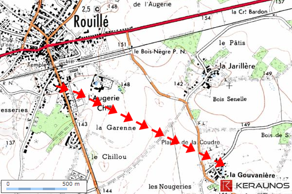 * commune traversée : ROUILLÉ (rue de la Libération, la Gouvanière)