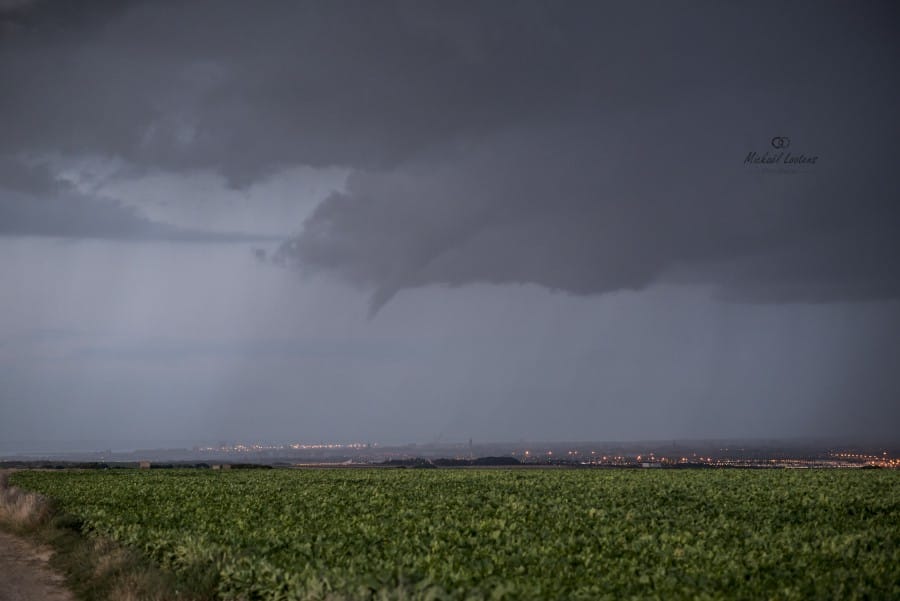 Cette cellule orageuse a pris part à une ligne de Cumulus congestus et de Cumulonimbus qui s'est formée en soirée du 19 août depuis les environs de Calais jusqu'à la région de Lille. Quelques éclairs ont été rapportés par plusieurs témoins au moment de la formation de la tornade.