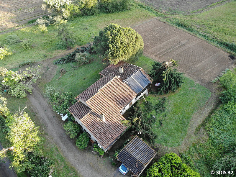 La tornade d’Aignan du 4 juin 2020 s'est formée en bordure sud-ouest d'une cellule orageuse active, qui transitait en flux de nord-ouest à proximité d'un fond de thalweg. Elle a pu être identifiée à l’appui de photographies aériennes qui illustrent les principaux dégâts. Ces clichés ont été réalisés par le SDIS 32 à l’aide d’un drone, à la suite du phénomène.