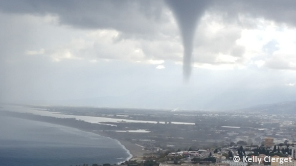Une trombe marine aperçue depuis les hauteurs de la ville