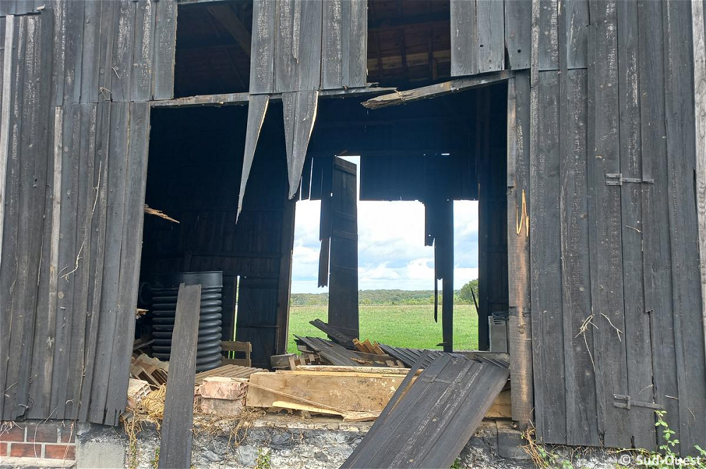 * principaux dégâts : arbres arrachés ou sectionnés, projection de branches à distance ; mobilier de jardin emporté, petites constructions soufflées ; plusieurs hangars endommagés, dont un séchoir entièrement détruit ; une quinzaine de bâtiments endommagés, dont deux ; habitations dont la toiture est partiellement arrachée ; véhicules endommagés ; nombreuses projections d'éléments de toitures, de tôles et de branches, à distance ;