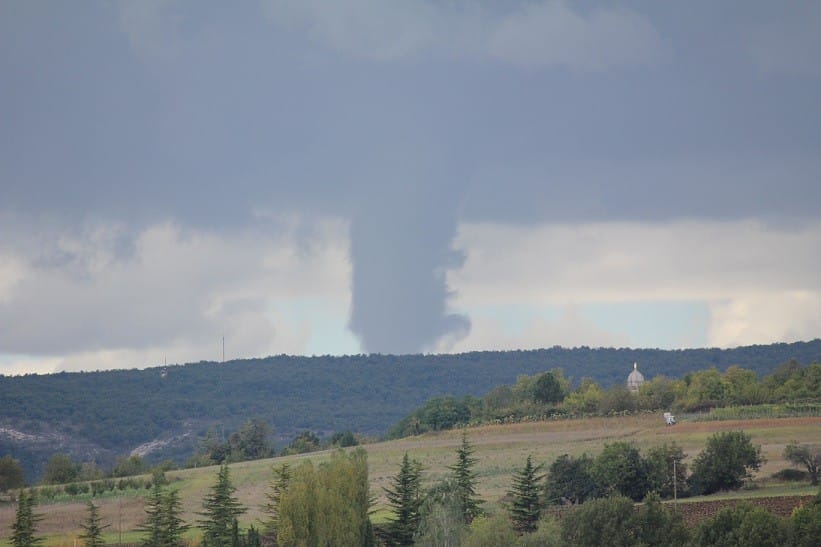Un phénomène tourbillonnaire très développé a été observé vers 15h50 locales, le dimanche 6 octobre 2013, depuis la commune de Saint-Michel-l'Observatoire, dans le parc naturel du Lubéron (département des Alpes-de-Haute-Provence). Ce tourbillon s'est développé en périphérie immédiate d'une structure convective monocellulaire active, bien électrique, et a eu une durée de vie d'environ 10 minutes.