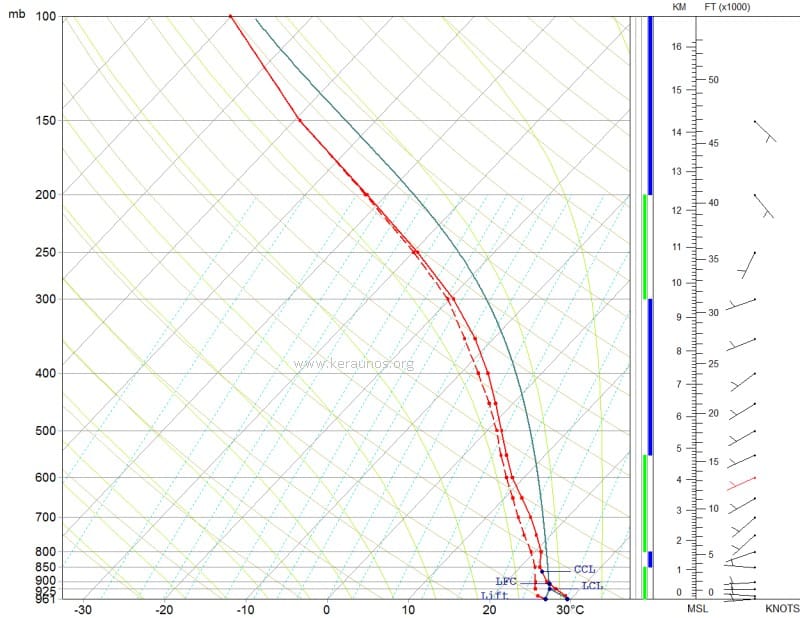 Fig.5 : cisaillements profonds accentués à l'est de Hong-Kong le 21/09/2013 à 00z