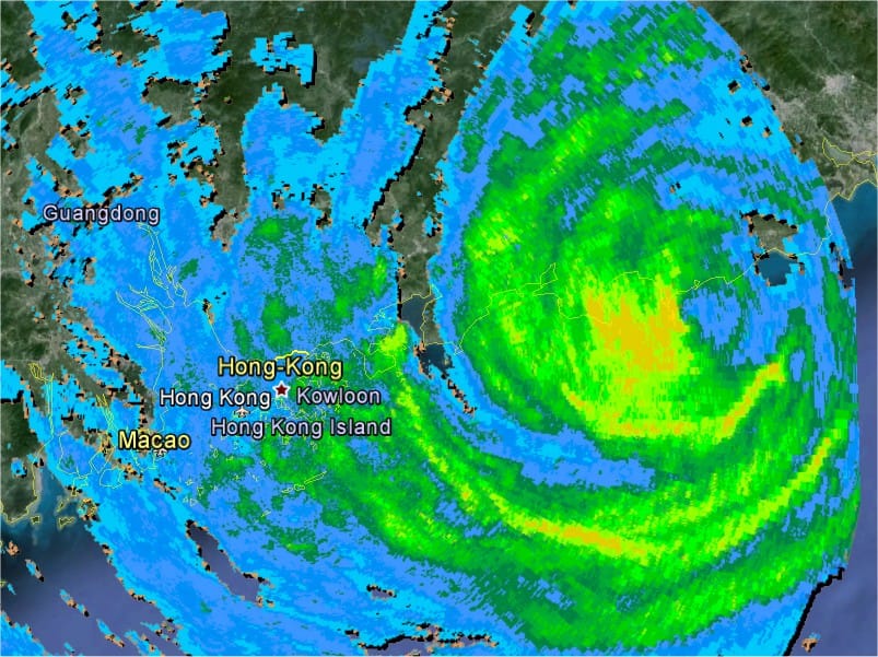 Image radar de l'Observatoire de Hong Kong : Usagi touche terre à l'est de Shanwei