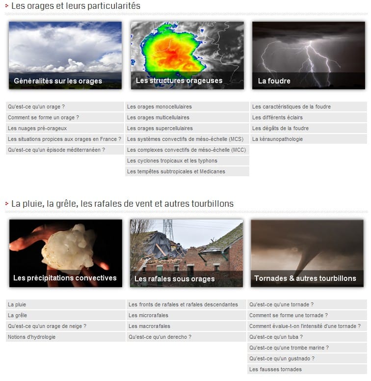 La partie pédagogie du site a été entièrement remise à jour pour cette nouvelle saison.Avec un accès plus fluide et des pages complètes sur tout ce qui a trait aux orages, le portail pédagogique est ventilé en 6 rubriques différentes : généralités sur les orages, les structures orageuses, la foudre, les précipitations convectives, les rafales sous orages et les tornades & autres tourbillons.