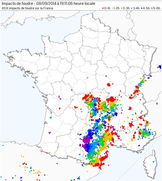 Des orages très isolés évoluent par ailleurs sur les Alpes ou le Morvan (ce dernier étant stationnaire depuis plusieurs dizaines de minutes).