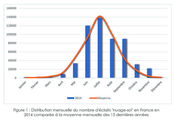 2014 : Bilan du foudroiement en France