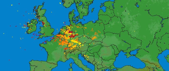 Orages sur le Nord de l'Europe, avec rafales destructrices en Allemagne
