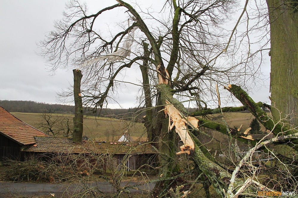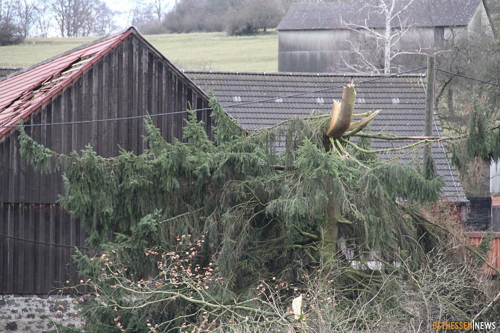 Dégâts suite à un violent phénomène venteux à Otterbach (Allemagne) le 2 mars à 02 h 30 TU - Ost Hessen News