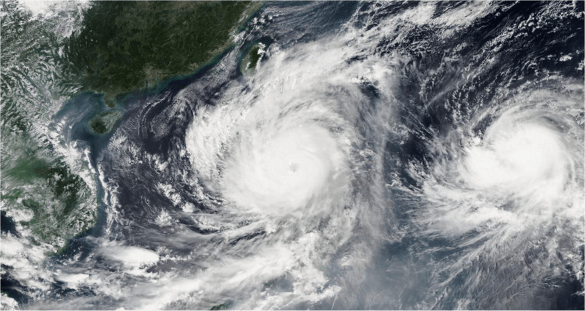 Koppu à son arrivée sur les Philippines (à gauche) et Champi (à droite) - Image satellite Himawari-8