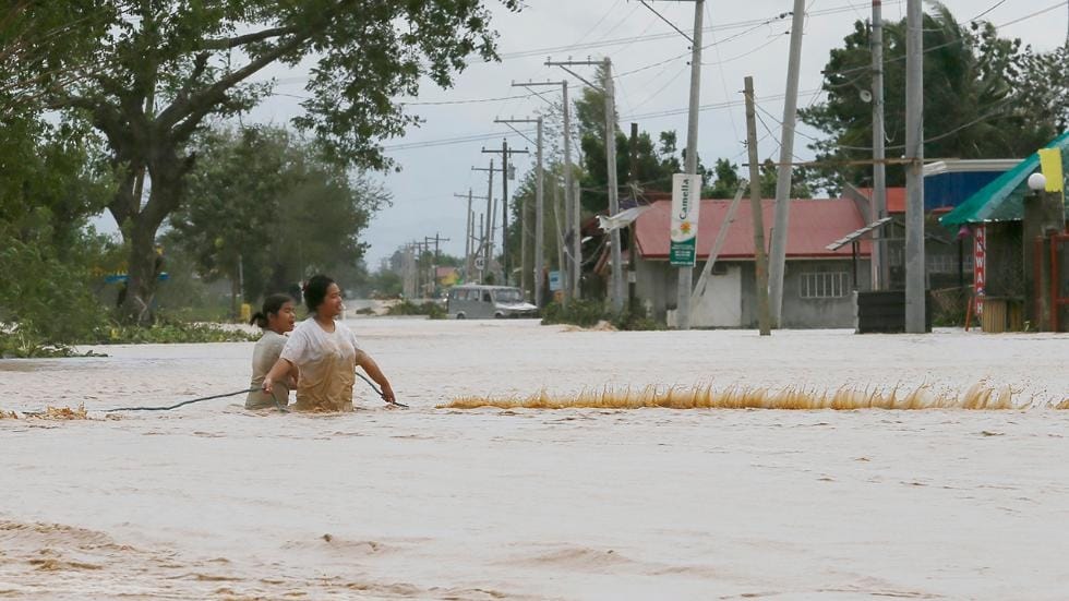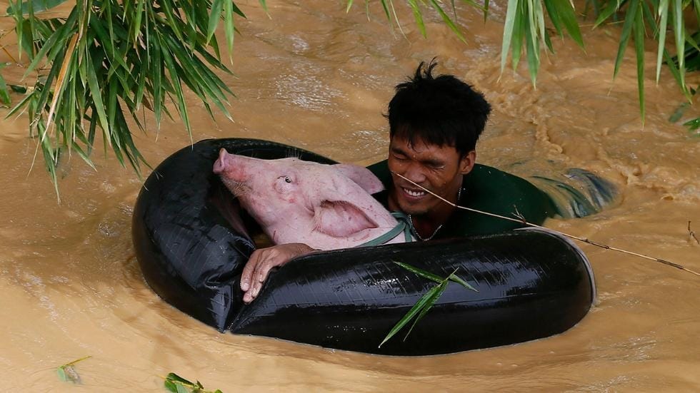 Les clichés suivants ont été pris par un photographe de l'agence de presse Associated Press dans des villages de la province de Nueva Ecija au nord de Manille et témoignent des inondations de grande ampleur qui occasionnent de sérieux dégâts aussi bien dans les villages que pour l'agriculture (élevage et cultures) :