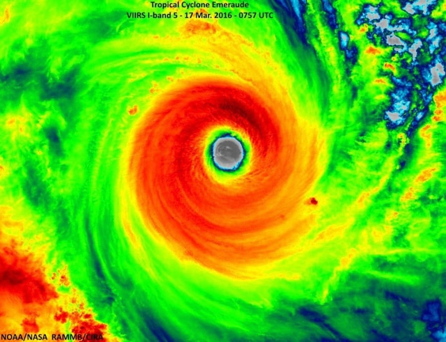 Le cyclone tropical Emeraude s'est rapidement intensifié le 17 mars dans l'Océan Indien. Très vite, le système a atteint la catégorie 4 avec des vents moyens sur une minute estimés à 125 noeuds par le JTWC. Le lendemain, le cyclone s'est affaibli de façon spectaculaire en tempête tropicale. Le cyclone n'a menacé aucune terre habitée et devrait à nouveau s'intensifier, en restant éloigné de toute terre.