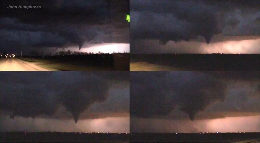 Une tornade nocturne a été photographiée et filmée près de Springfield :