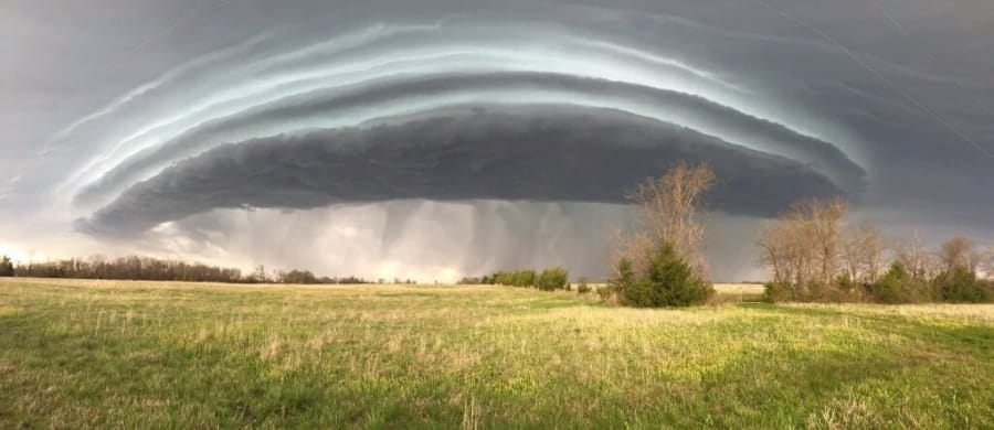 Deux jours plus tard, le 17 mars,, c'est le Texas qui a été frappé par des orages supercellulaires qui ont produit des chutes de grêle destructrices. Des structures convectives très bien dessinées ont par ailleurs été capturées comme cet arcus photographié par Ryan Watters près de Clarksville :