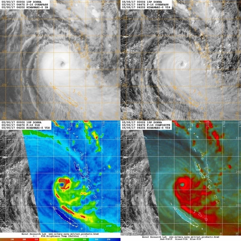 L'imagerie satellite micro-ondes met en évidence une solide structure interne, plus développée sur le quadrant est du système. L'oeil de Donna est relativement large et particulièrement bien défini sur l'ensemble des canaux satellite :
