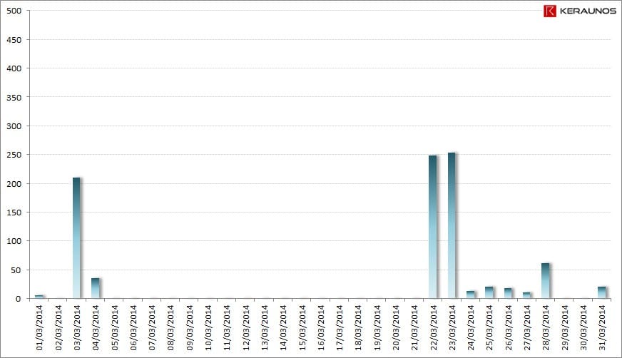 Le mois d'avril 2014 a été caractérisé par un nombre de jours avec orage relativement élevé. Toutefois, les phénomènes orageux sont très majoritairement restés faibles à modérés, sans dégradation vraiment significative.