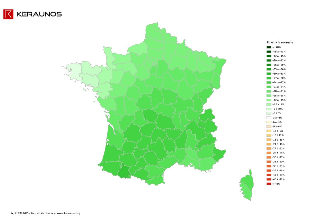 Les contenus en eau précipitable ont été excédentaires sur l'ensemble du pays. La moyenne nationale est de fait la plus élevée pour un mois de janvier depuis 1988.